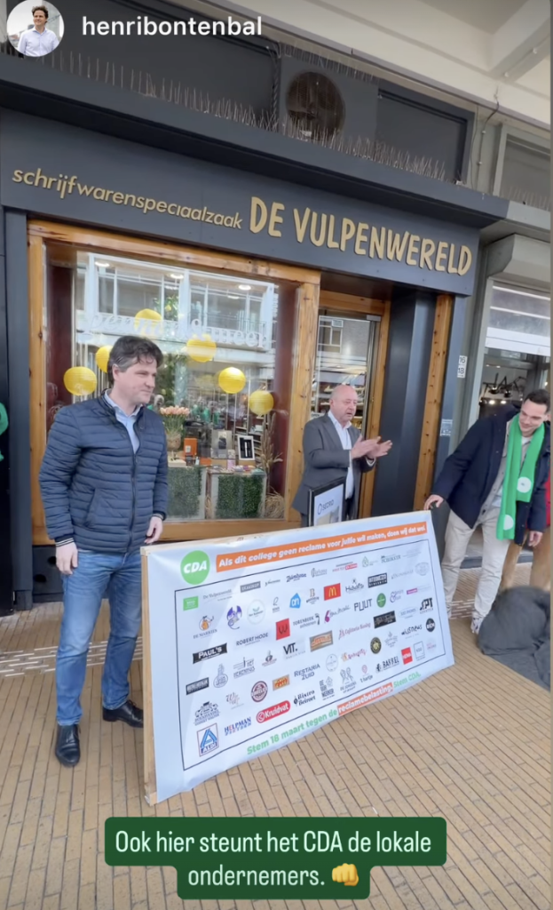 Afgelopen weekend kreeg dat debat extra aandacht toen landelijk CDA-leider Henri Bontenbal samen met lokale CDA-politici de Groningse binnenstad bezocht. Tijdens gesprekken met ondernemers en winkeliers werd opnieuw kritiek geuit op de reclamebelasting die de gemeente heft op onder meer bestickering van winkelruiten. Ook de Groningse CDA-lijsttrekker Jalt de Haan was bij het bezoek aanwezig. Voor hem is de discussie over de reclamebelasting een belangrijk onderwerp in de aanloop naar de gemeenteraadsverkiezingen.
